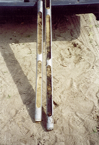 Die linke Rammkernsonde enthält Boden aus bis zu 1 m Tiefe.